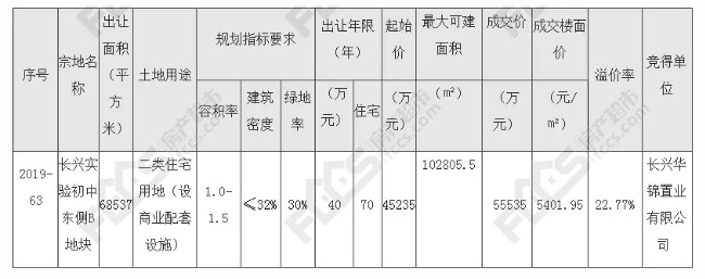 &nb ©sp; 6月(yuè)17日(rì)上(shàng)午,宗地(dì)編号2019-63号¥Ω←長(cháng)興實驗初中東(dōng)側B地(dì)塊公開(kāi)出讓¥₹♦并成交!據悉,該地(dì)塊坐(zuò)落于龍山(shān)街(jiē)道(dào)新湖(h ₩ú)村(cūn),出讓面積68537㎡,規劃為(wèi)二類住宅用(yòng)地(dì)£₹≤(設商業(yè)配套設施),規劃容積率1.0-1.5,起始價45235萬元,按其最高←$(gāo)容積率計(jì)算(suàn)樓面起價4400.06元/㎡,最大(dà)可(kě)建面積≈★約102805.5㎡。