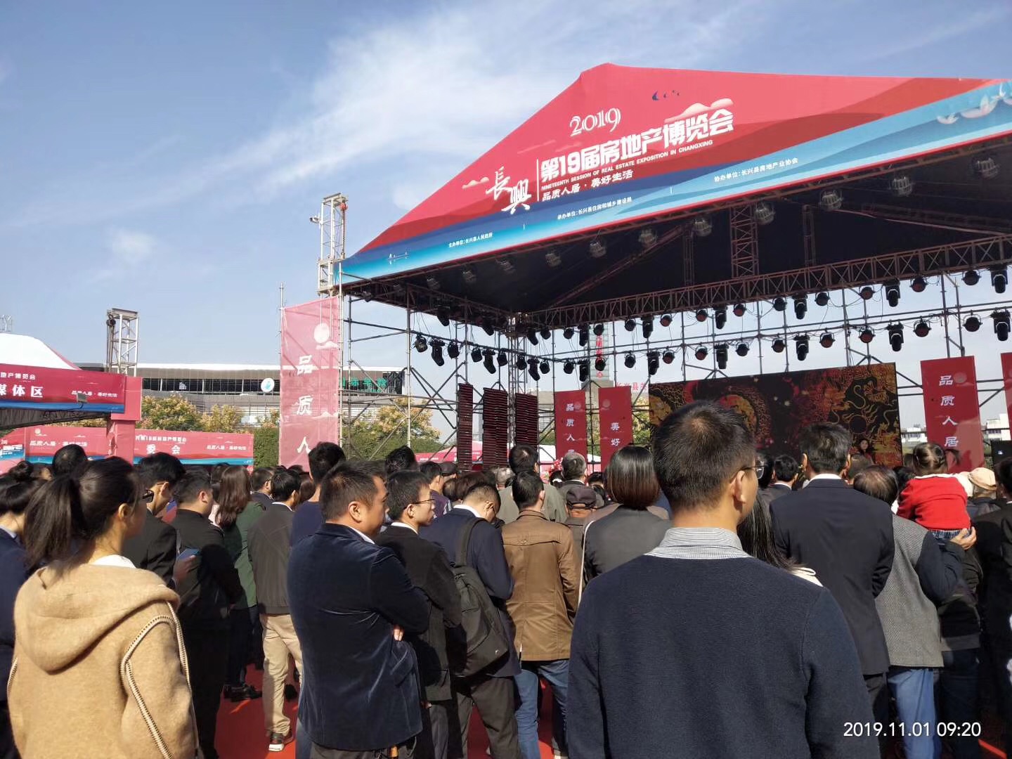 2019年(nián)11月(yuè)1日(rì)長(cháng)興第19屆ε♦房(fáng)地(dì)産博覽會(huì)。“一(yī)城(chéng)♣∞¶∑錦繡,心歸雲裡(lǐ)”