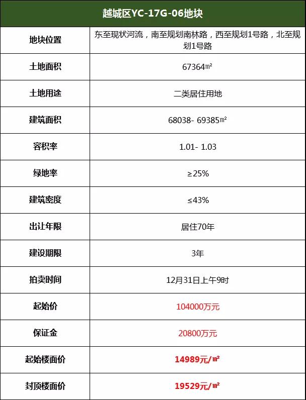 ≤§β®; 紹興華樾房(fáng)地(dì)産開(±≤kāi)發有(yǒu)限公司以總價13.55億元Ωππ+競配建7600㎡競得(de)該地(dì)塊,成交樓面價 19529元/㎡,溢價率 30.3%。